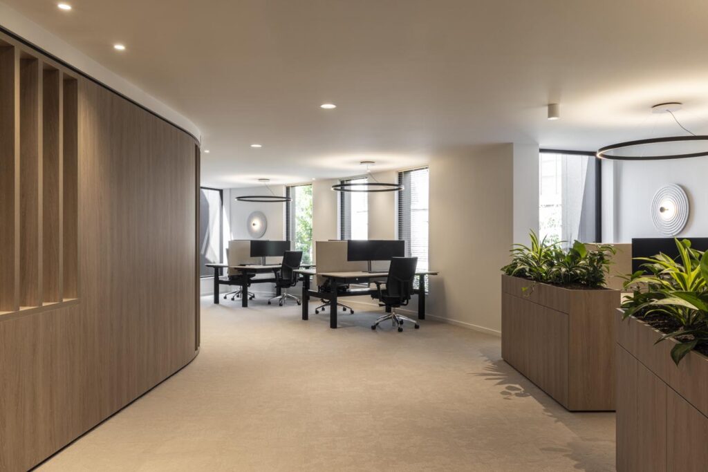 “We zitten op een plek waar we heel tevreden over zijn, maar toen je hier binnenkwam, leek het alsof je twintig jaar terug in de tijd stapte,” vertelt Luc Weusthuis. “Het was gedateerd en toe aan vernieuwing. We wilden een pand waar we trots op kunnen zijn; voor collega’s, relaties én toekomstige medewerkers.” Met die wens ging een zorgvuldig verbouwtraject van start. Samen met Lumio en andere partners werd gezocht naar een nieuw evenwicht tussen stijl, sfeer en functionaliteit. Licht speelde daarin een sleutelrol.